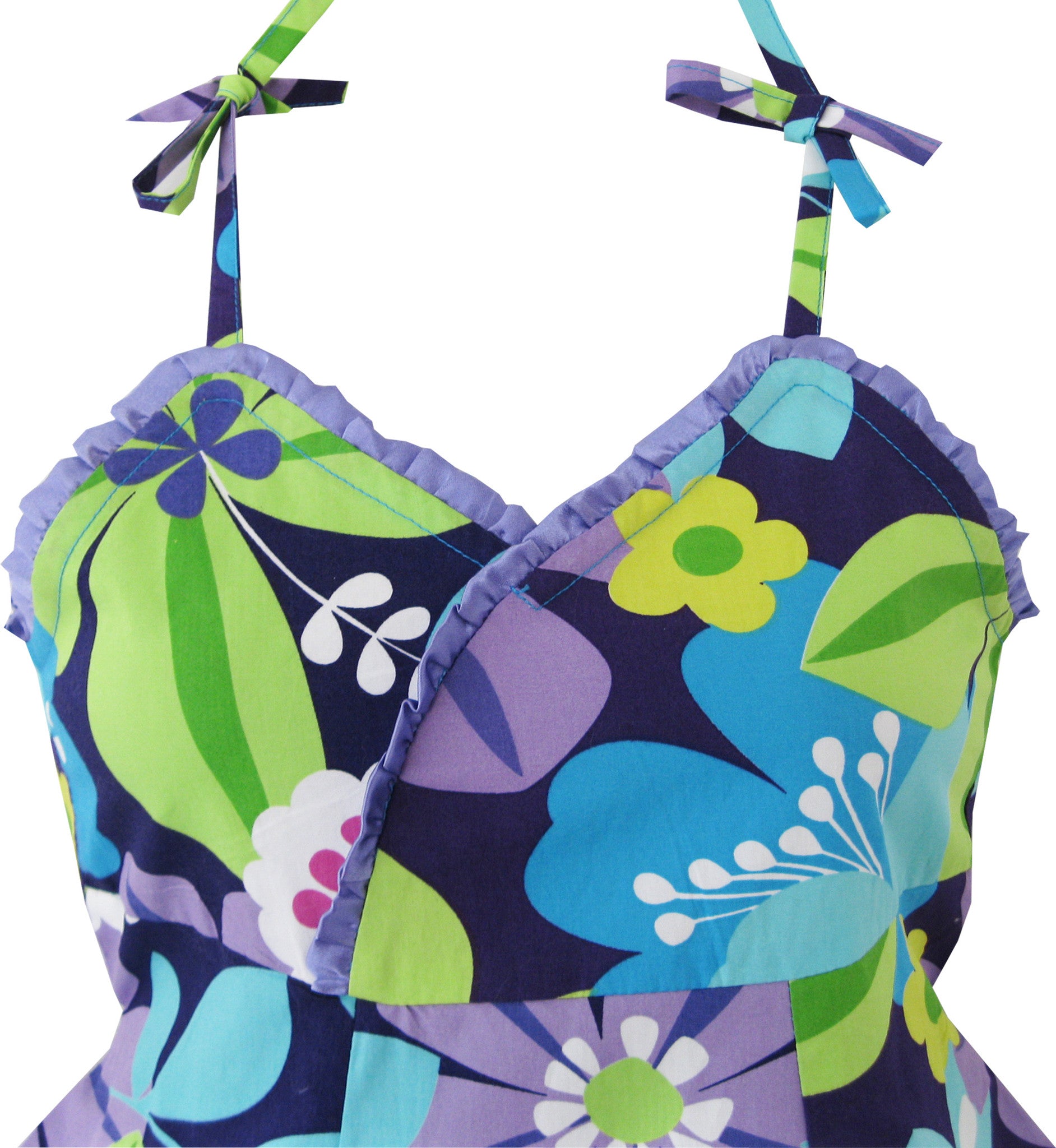 Flower print dress.Detailed trim at hem. Machine wash. Made in China. Following sizes mean age ranges for girls, they are for general guidance only. For most accurate fit, we recommend checking detailed measurement before purchase.