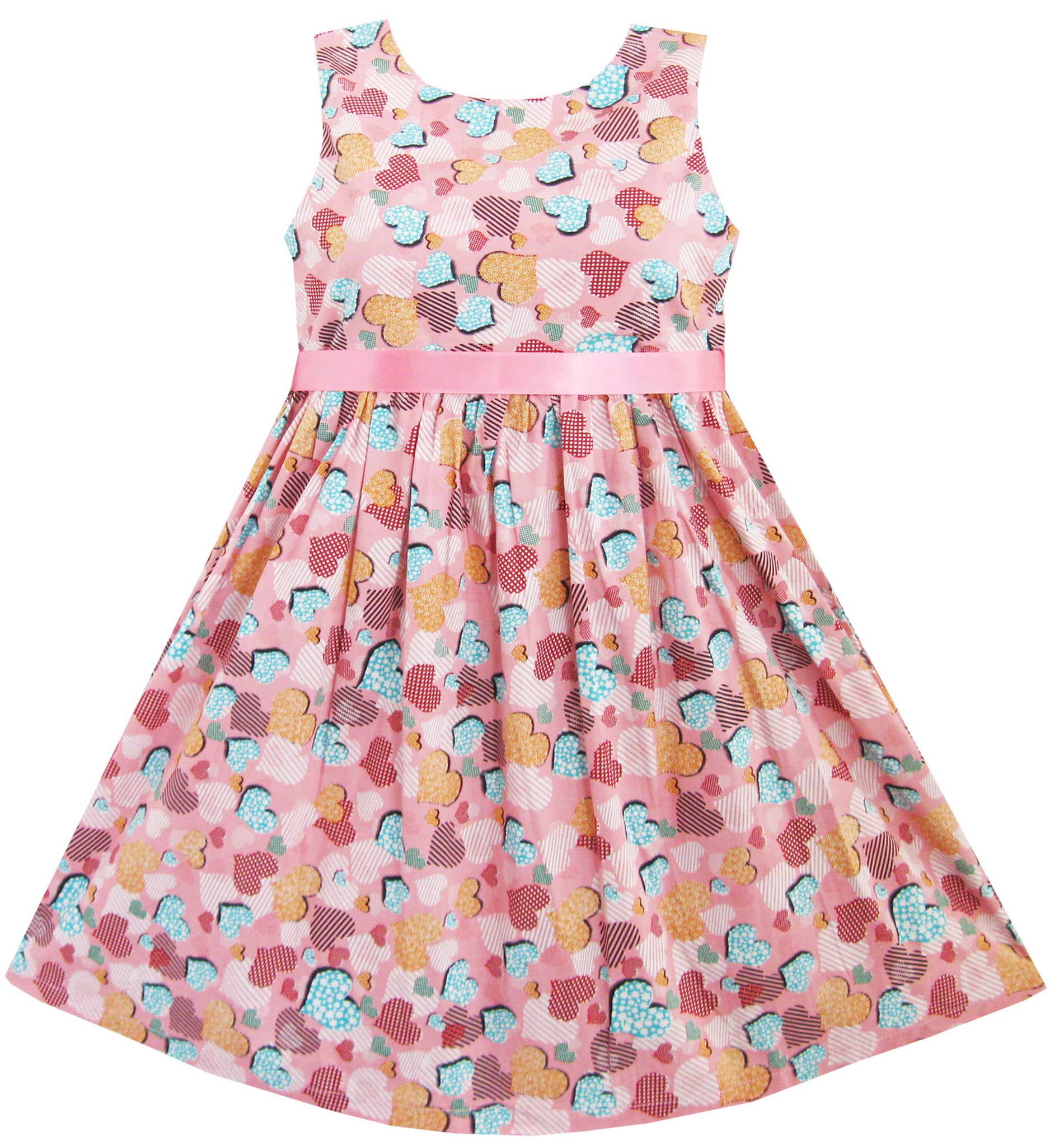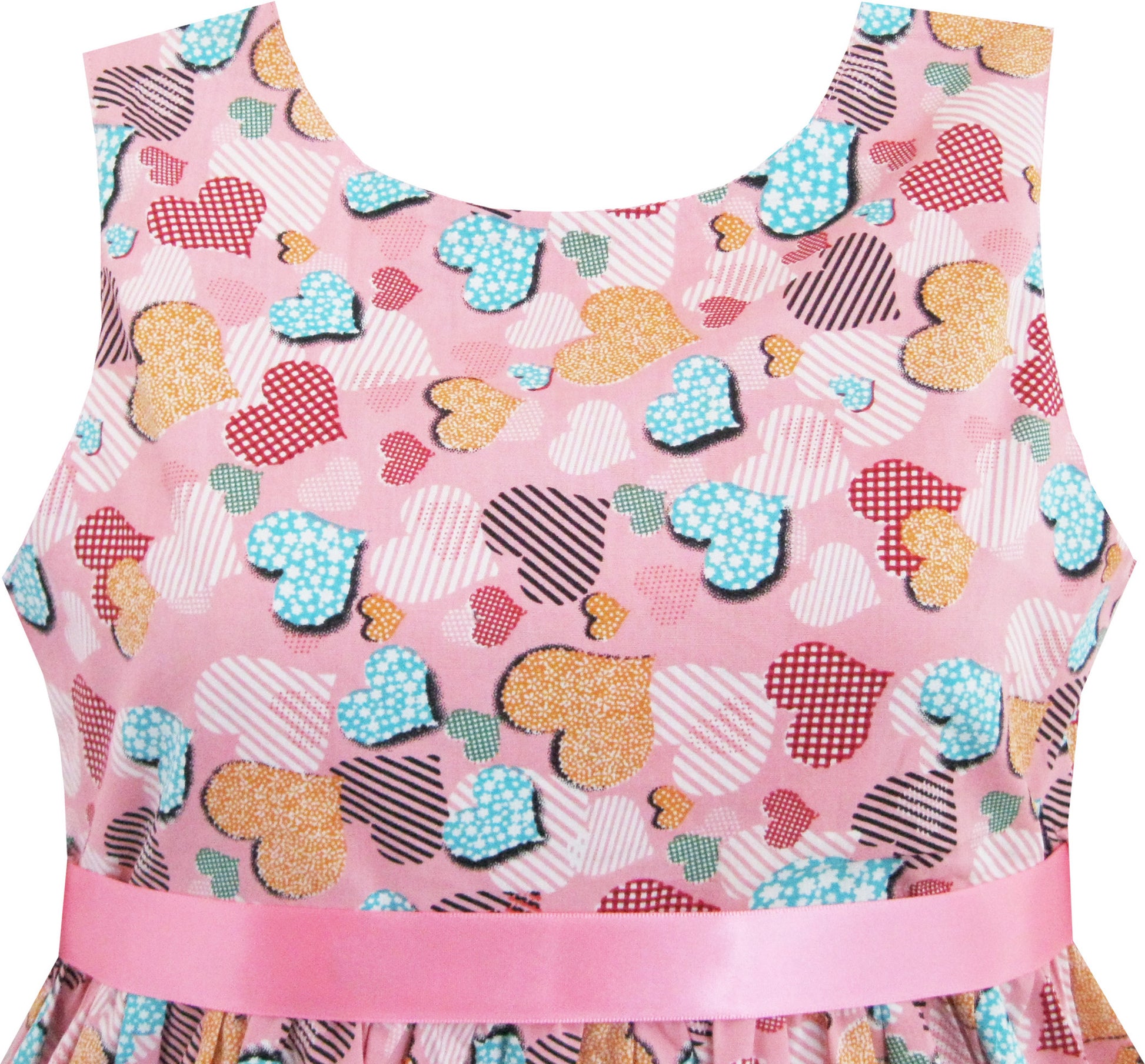 Girls Dress Heart Print Belt Party School Size 2-10 Years