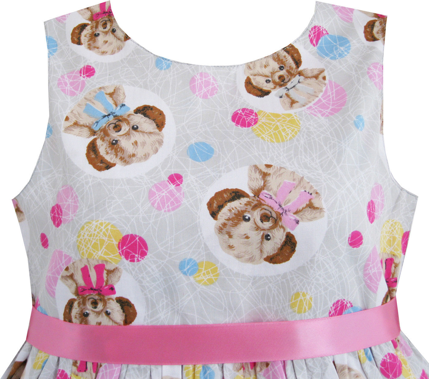 Kids Girls Bear Print Dress School Size 2-10 Years Grey