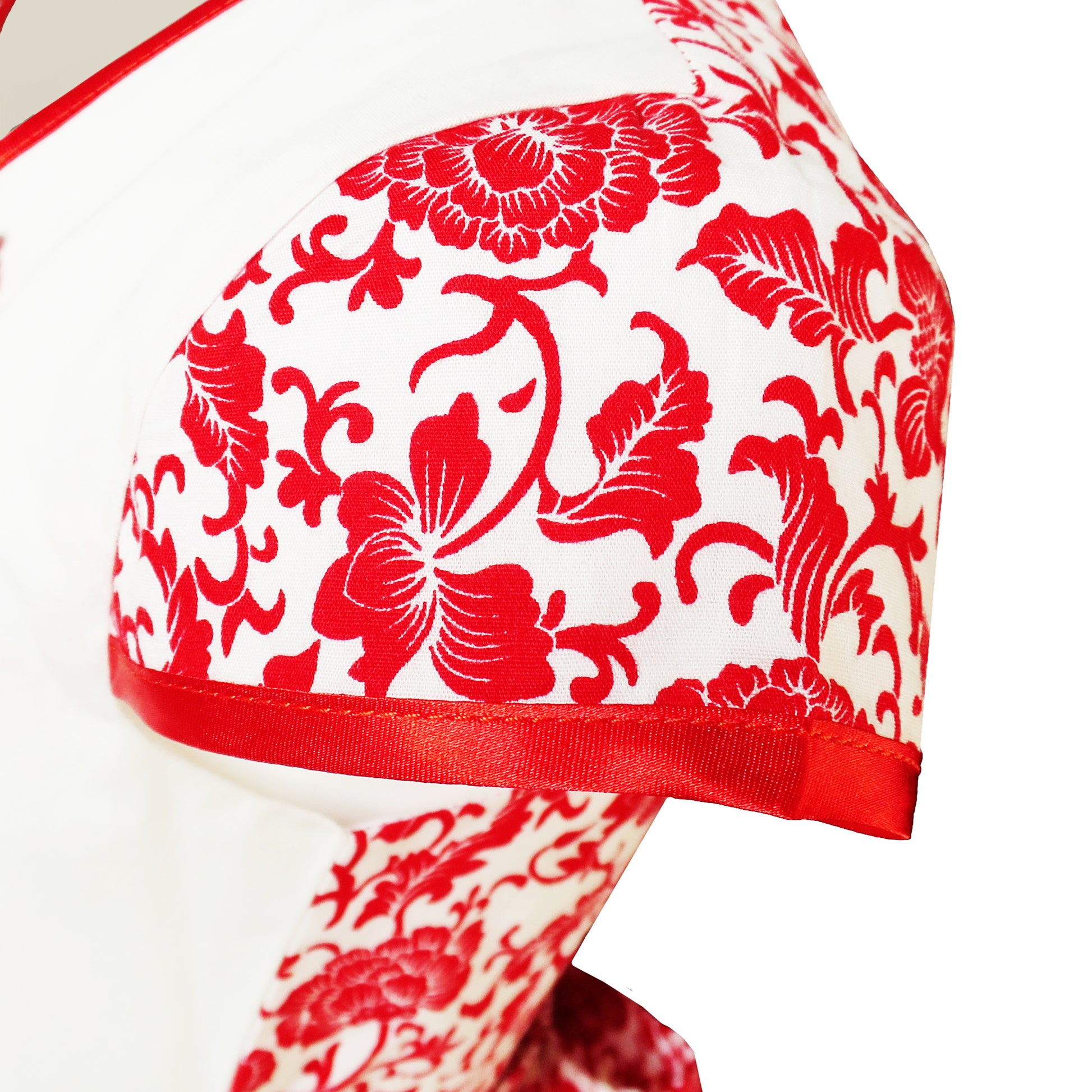 - Lace and organza. Full lined with 100% cotton.