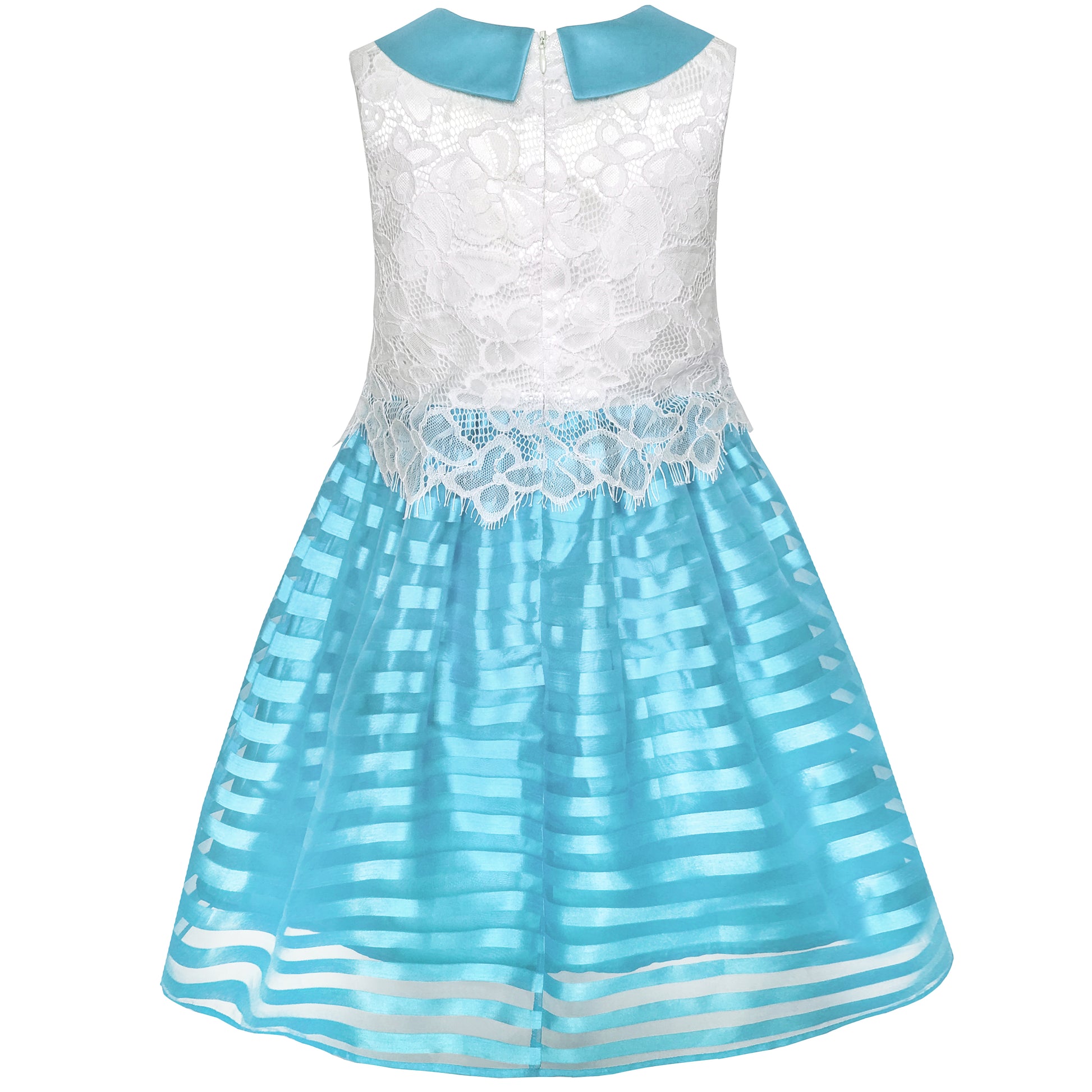 Great quality stripe organza sundress with lace on top decoration. Perfect for your little girls' and big girls' any special occasion, birthday party,back to school party and everyday wearing. Following size means age ranges for girls, they are for general guidance only. For most accurate fit, we recommend checking detailed measurement before purchase.