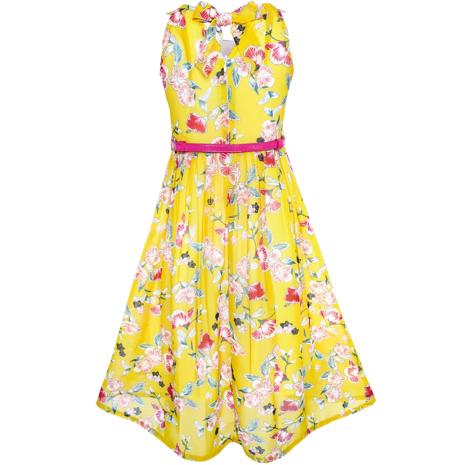 Girls Dress Floral Belt Chiffon Party Maxi Dress Size 6-14 Years