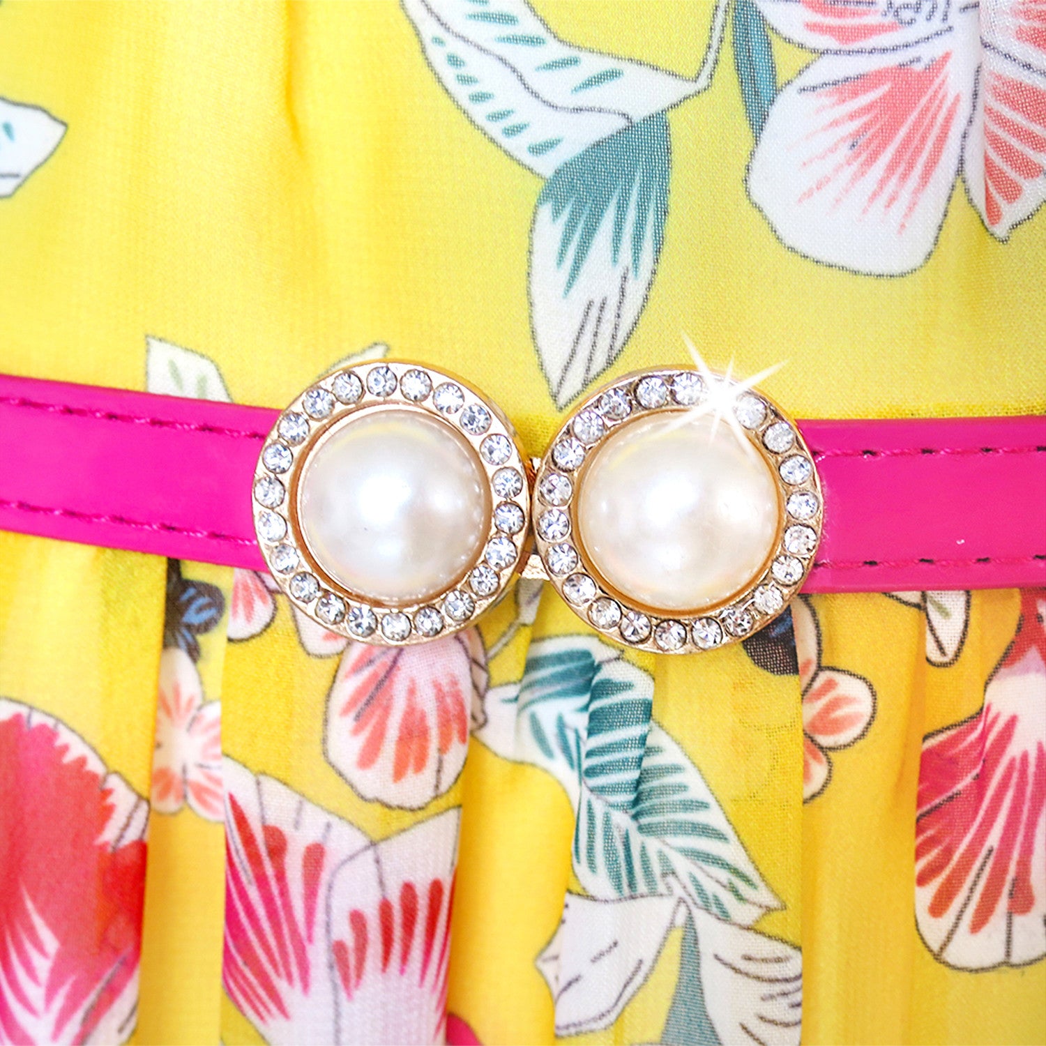 Unique design floral chiffon dress for your little girls and big girls. Face-framing pleats crown the bodice of this romantic dress. Red belt highlight the waist. We have multi color for your choice. This elegant dress is perfect for any special occasion, wedding, first communion dress, birthday and party dress. Following size means age ranges for girls, they are for general guidance only. For most accurate fit, we recommend checking detailed measurement before purchase.