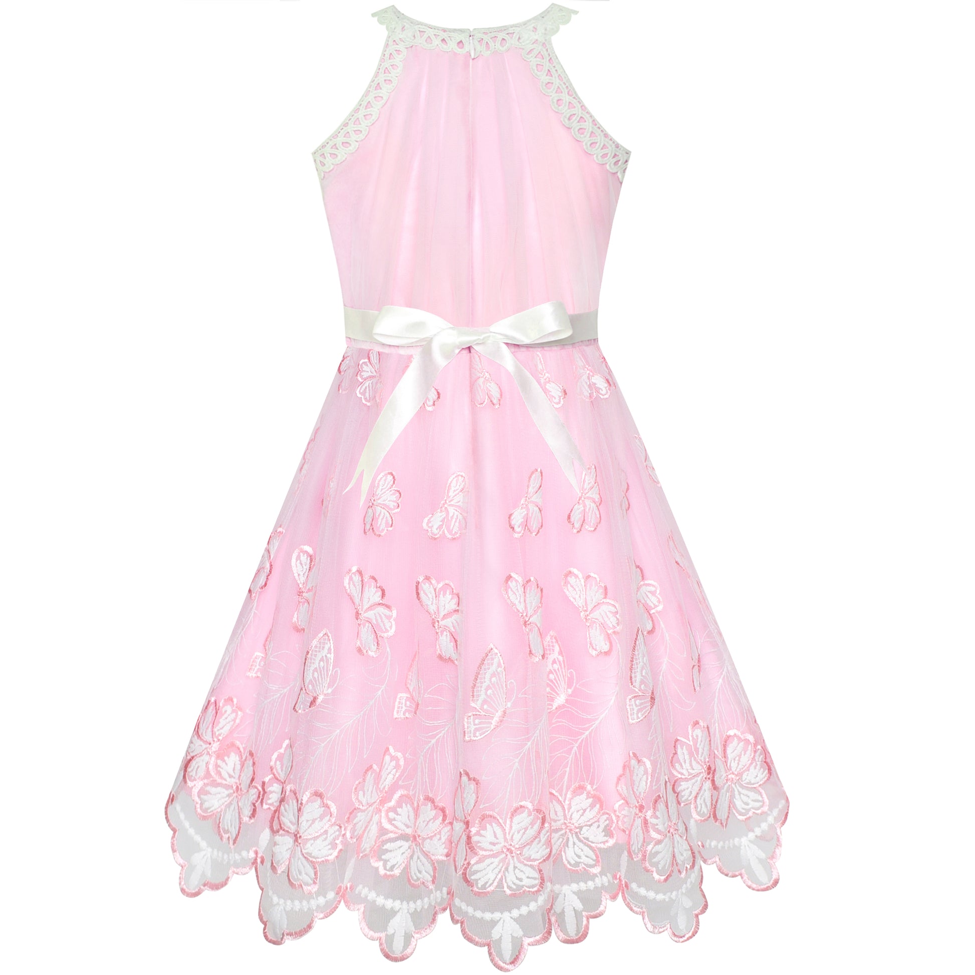 Girls Dress Butterfly Embroidered Halter Dress Party Size 5-12 Years