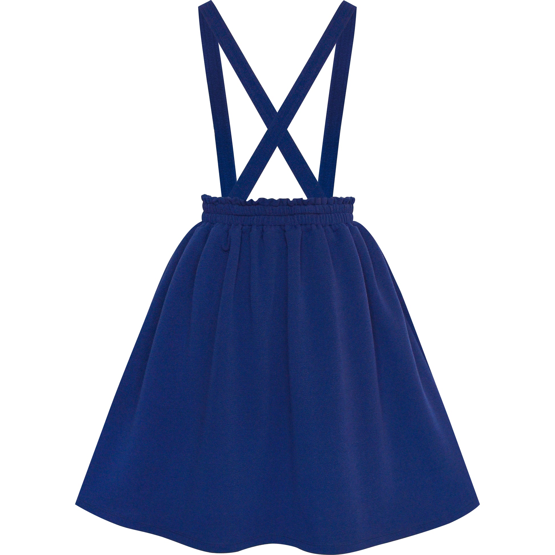 The girls' skirt is a blue mini skirt with pleated details and a high waist design. It is made to be worn with suspenders, adding a touch of fashion to the outfit. This versatile skirt can be paired with various tops and accessories, making it perfect for a variety of occasions. In particular, it can be combined with -themed clothes, creating a fun and unique look for a Halloween party or special event. Following size means age ranges for girls, they are for general guidance only.